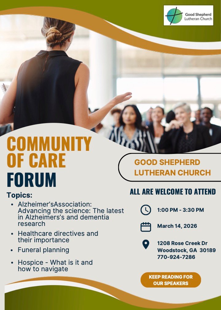 Welcome to Good Shepherd Lutheran Church, Woodstock, Georgia. We’re glad you’re interested in our church. We offer many opportunities for worship, learning, serving, and connecting. If you’re visiting for the first time, check out our ABOUT US page. For answers to common questions, check our FAQ.